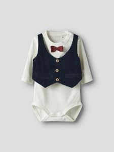 Bodyen har vest og sløyfe foran, som sitter fast.
